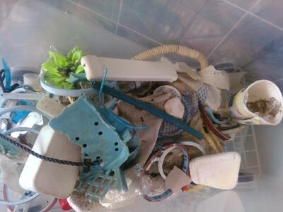 実は、ゴミとして集められたこれらのものは、今後、作品として新たなデビューを飾ろうとしている「候補生」たちです。というのも、海洋プラスチック班では、8月の環境シンポジウムに向けて、「海ごみアート」に挑戦するとのこと。さて、天草の海で見つかった数々の海ゴミに新たな命を吹き込むことができるのでしょうか。この作品は、8月30日に市民センターで行われるシンポジウム「アマプロ」で展示されます。ぜひ、素材を生かした、それでいて芸術の香りもする「海ごみアート」を見にいらしてください。会場でお待ちしています!
