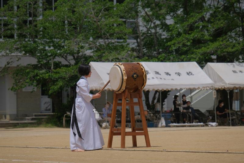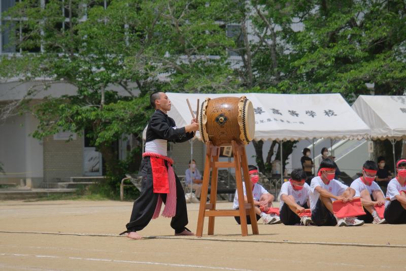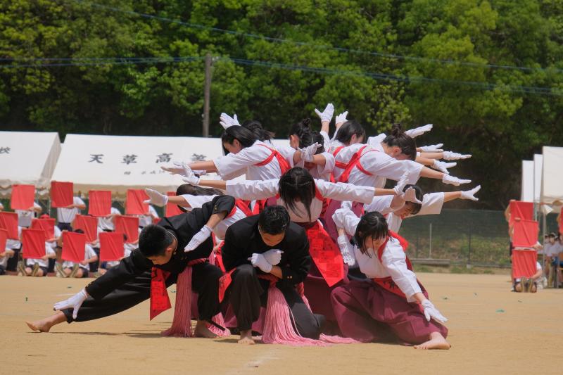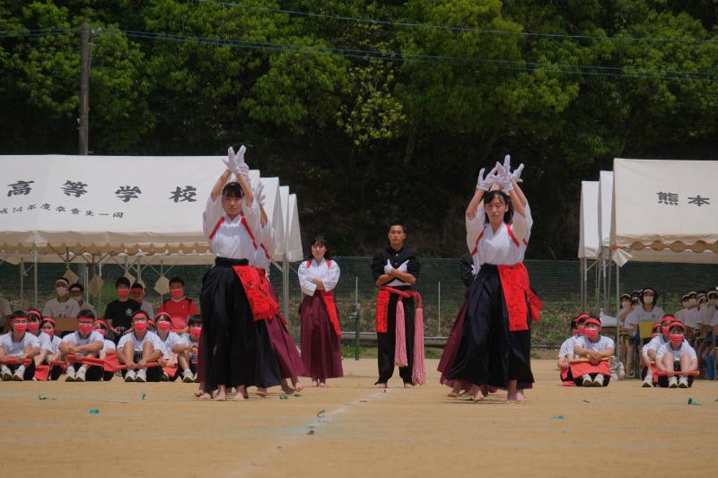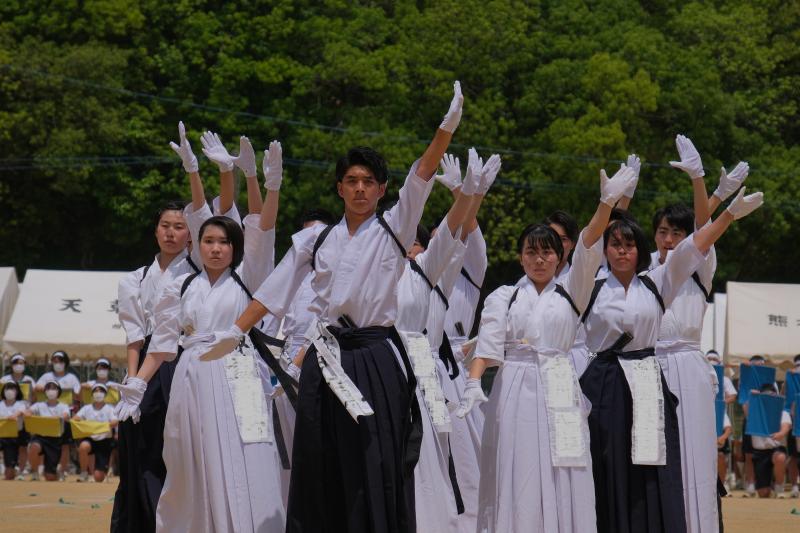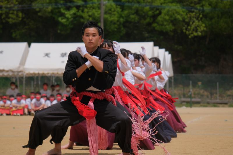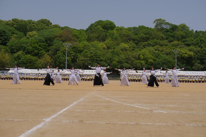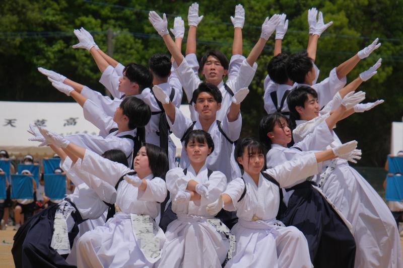 今年度の演舞は、応援団の舞いに合わせて、団員たちが旗を振るといった全員参加型のものとなりました。