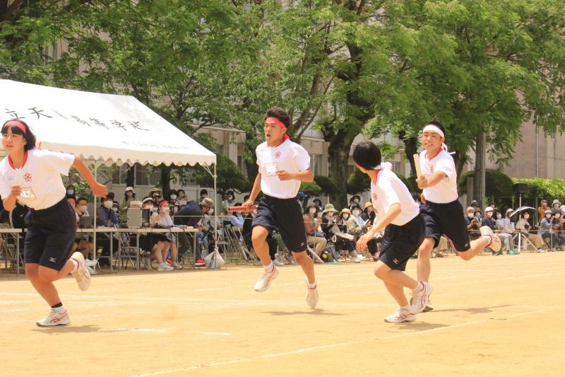 最終種目である団対抗リレーは、一進一退を繰り返し、最後は白団が振り切る形となりました。
