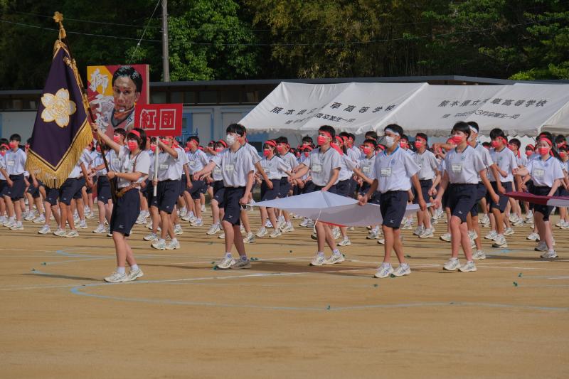 水田育友会長、森生徒会長、両団長の力強い宣誓など、今できることに精一杯取り組みたいという想いが込められた開会式となりました。