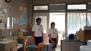 体育大会のお礼に、紅団団長の原田くんと白団団長の倉田さんが来てくれました。