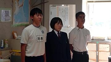 また、全日程の終了を、生徒会長の猪原くんと生徒会副会長の宮﨑さん、藤門くんが報告に来てくれました。