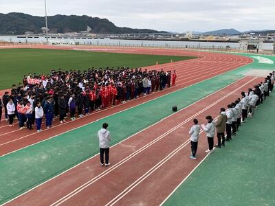 県陸上競技合宿が、1月10日(土)から12日までの3日間、あましんスタジアムを中心に開催されました。中日の11日は、天草の山間部でも積雪が起こるほどの霙交じりの天候でしたが、寒さに耐えながら合宿が行われました。天草高校の陸上競技部の生徒も11日(日)から2日間の日程で参加をしました。専門種目に分かれての練習であったので、来年度の総体で競い合う仲間、ライバルと一緒に技術を高めたり、走り込みを行いました。今回、合宿練習冊子に記載してあったスローガンの「燃やせ!」の通り、寒さに耐えながら、内に秘めたる炎を燃やし、練習に取り組みました。他校の生徒と交流しながら、自分の力量をレベルアップしました。今後、学校の練習で合宿で培ったことをさらに昇華させ、春先の試合期に向け、「心・技・体」を充実していきたいと思います。