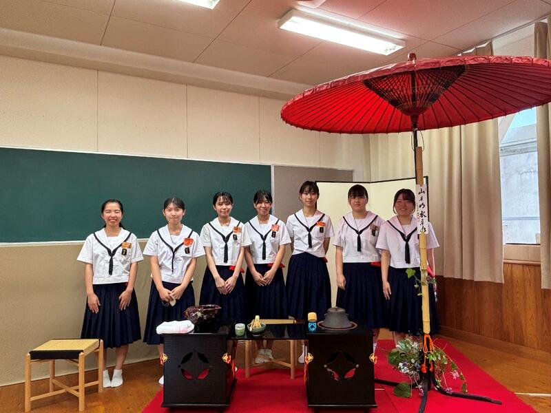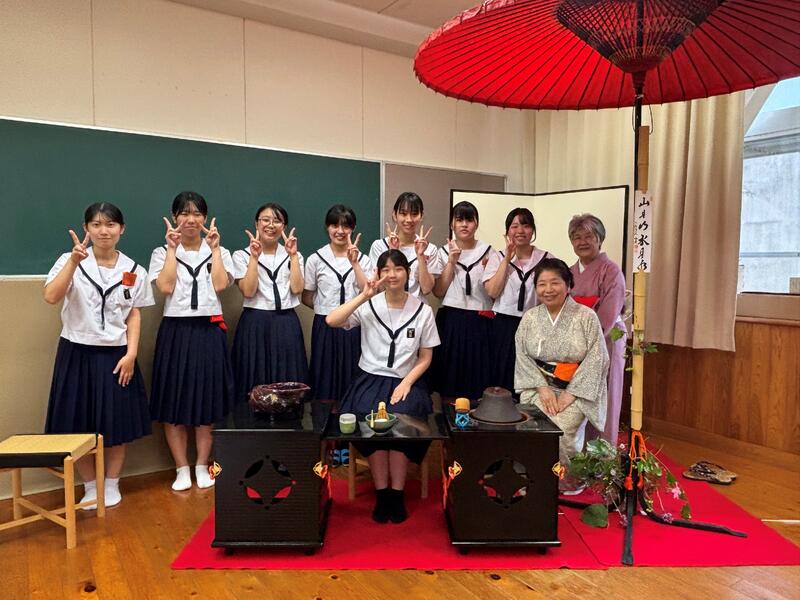 お茶をのみに来てくれた3年生と、いつもご指導下さる中野先生、脇元先生との集合写真