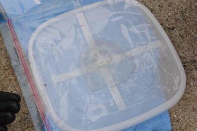 クラゲがいるのか不安でしたが、かさの直径5~10cmのミズクラゲが19匹捕獲できました。