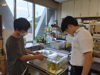 参加したのはASⅢのバイオエタノール班、クラゲ班、粘土班、マイクロプラスチック班および科学部のホタル班の計5班です。これまでに採取したサンプルを持参して大学の機器でデータを解析しました。