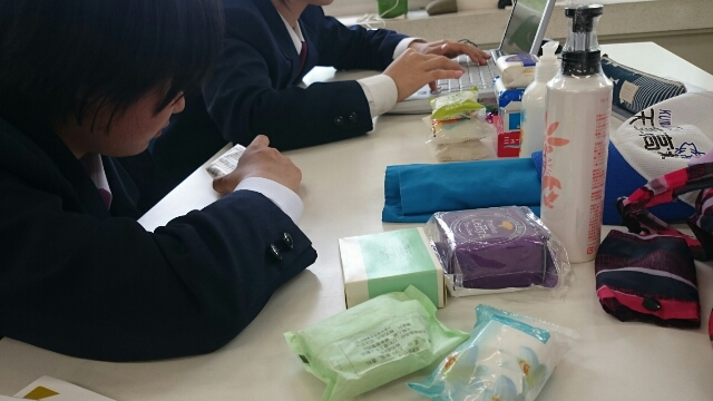 また、石鹸の研究を行う班は、各自の家にある石鹸を持ち寄り、成分を比較していました。