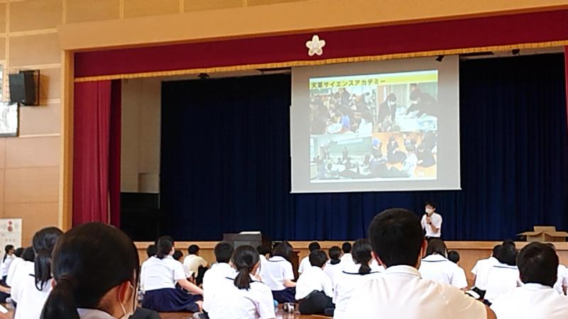 6月25日(金)の1年生を対象とした文理AS説明会の中で、AS(天草サイエンス)クラスを説明しました。