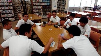 「7名で大富豪をする際に、革命(同じ数字の4枚のトランプを同時に出す)が起こる確率は」など、各班で実験及び考察を行っていました。