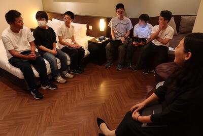 After dinner, students had a presentation practice & meeting. First, they practiced their presentations in English and had a Q&A session. The students participating in this training program belong to three groups: the Sea Level Group, which aims to develop hazard maps reflecting sea level fluctuations; the AI Traffic Signal Group, which is researching the practical application of AI traffic signals in Japan; and the Cluster Amaryllis Group, which aims to inhibit weed growth on abandoned farmland by utilizing toxins contained in the flower. Although their presentations still need lots of improving, we could see each group tried hard to make their presentations easy to understand by memorizing their scripts or thinking of ways to attract the audience's attention. The students listening to the other groups also worked hard, asking questions and giving them advice in English. Well, we know it's not easy to have presentations in English, but you can continue to work hard to make it better until the last minute. We are sure you can do it!