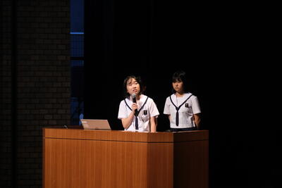 研究発表では、ホタル班の1年生が研究発表を行いました。1年生は緊張した様子でしたが、一生懸命発表していました。