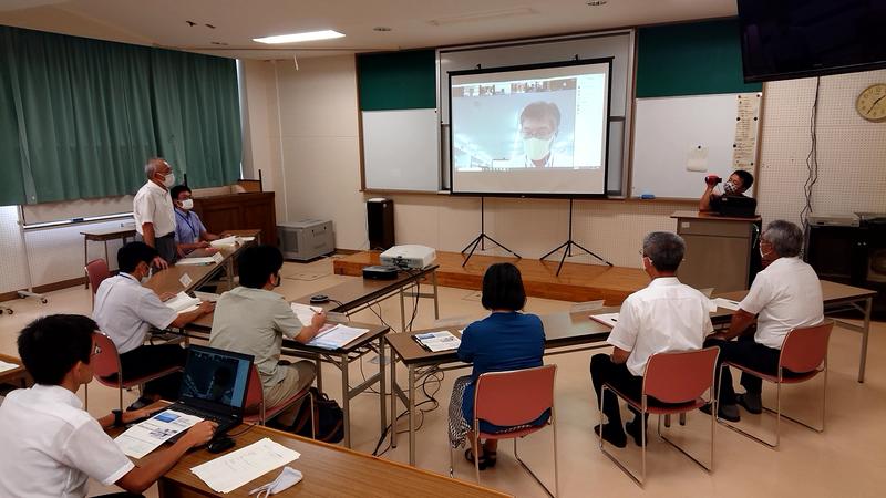 今回は、2名の委員が来校され、その他の委員の方々はZoomによるオンライン会議という形式で行いました。
