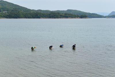 今回の調査はアマモ班のみで行い、アマモの種子の生育状況調査と周辺の魚類の調査を行いました。