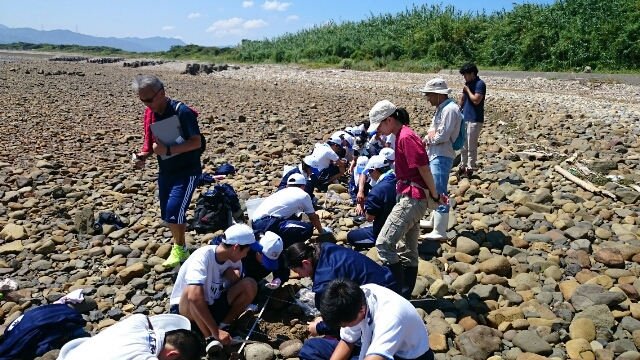 新垣先生の講義が終わり、いよいよ潮間帯生物の採取に向かいます。