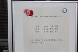 新会長に2年三浦さん、副会長に2年野中さん、1年猪原さんが選出されました。