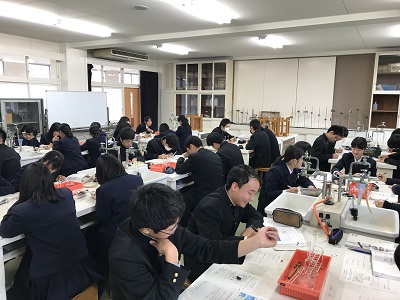 センター試験直前ではありますが、3年理系の生徒は実験に取り組みました。