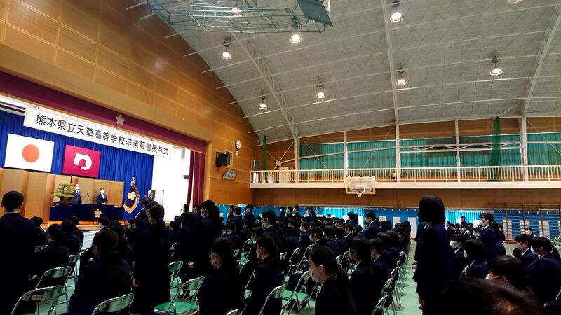 熊本県がんばる高校生表彰や高体連表彰、高文連表彰、高野連表彰、図書部会表彰、学校保健委員会表彰、3ヵ年皆勤賞といった様々な表彰が行われました。