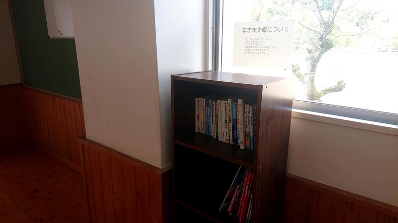 1年棟の廊下に、1年学年文庫スペースがあります。