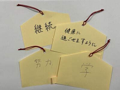 新年一発目、部活動の練習を始めるにあたって、絵馬に願い事や抱負を書いてみました。