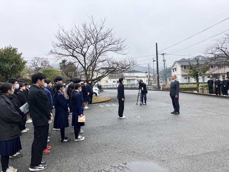 出発式では代表生徒が「これまで支えてくれた保護者、先生方に感謝し、共に学んできた友人たちと互いに励まし合い頑張ります」と挨拶をしました。
