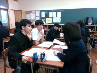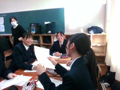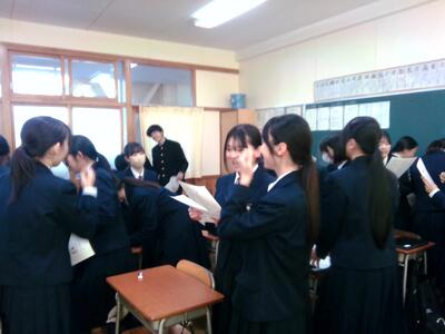 本日のLHRでは、「私の四面鏡」というタイトルで、他の人から見た自分の長所を知るSST(ソーシャル・スキル・トレーニング)の活動を行いました。ウォームアップ活動の後、まず、自分が思う自分の「いいところ」をリストから5個選びます。その後、担任の先生方に他の先生のいいところを5つ選び、その理由を紹介してもらいました。クラスの生徒たちは、自分のクラスの先生が褒められる度に、大盛り上がり。意外と「ユーモアがある」点や、やっぱり「てきぱきしている」点に頷いたり、納得の理由に拍手を送ったりしていました。