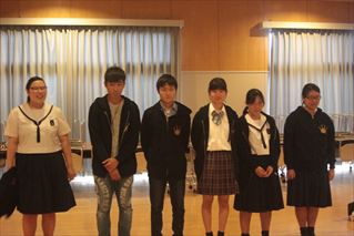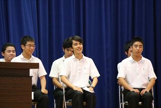 各候補の推薦者とともに、挨拶やトイレのスリッパ並び具合に対する問題提起や、今秋の120年記念行事や文化祭にかける意気込みを述べてくれました。