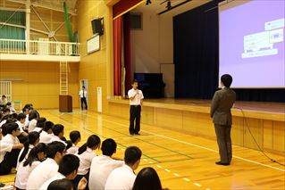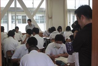 生徒たちは,講師の方の話に真剣に聞き入っていました。