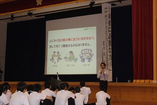 生徒代表として2年宮崎さんが「スマートフォンだけでなく、直接言葉を交わすコミュニケーションもとっていきたいと思います」とお礼の言葉を述べました。