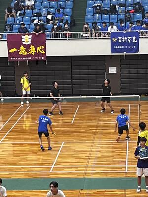 8月2日、3日に男子は熊本県立体育館で、女子は熊本市総合体育館で試合が行われています。この大会は全員が出場できるため、一人一人が日頃の練習の成果を発揮して頑張っています。現在、シングルス2回戦中です。(筆:マネージャー)