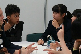 他国の生徒とディスカッションする中で、本校の岡部さんがグループIのリーダーに選出され、明日行われる宣言文作成に参加することになりました。