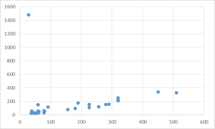 その後、1つだけある外れ値を相関図で把握し、適当な平均値の求め方を話し合いながら考えました。