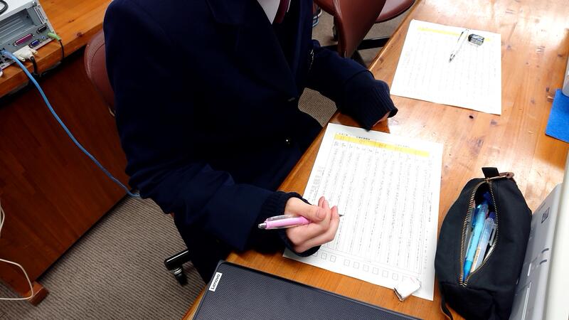 一人ずつ面談形式で行われ、生徒たちは自身の研究活動を振り返りながら、熱心に回答していました。