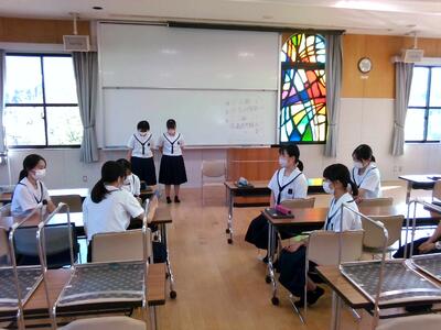 本日は、2学期の流れの説明の後、生徒は班別の自己評価を行いました。