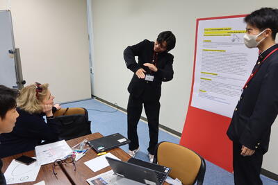 生徒達はASやATの研究を進める中で実験や調査を複数回実施し、集めたデータを分析して考察を行っています。年々、データの集め方や見せ方が上達している一方、結果と考察が混在していたり、根拠が薄く推測の域を出ない考察も多いことが課題となっています。今回の職員研修では、実際の研究ポスターを見ながら、より良い考察を行うための追加実験や先行研究の活用について「生徒」と「指導者」に分かれてロールプレイを行いました。それぞれの立場から、対象や条件を変えた調査に関する提案や、仮説と結果が異なる場合の検証方法等、様々なアイデアや意見が出て、活発な話し合いをすることができました。
