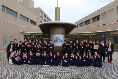 プレゼンテーションが終了したのは3時半。名残惜しいですが、そろそろお別れの時間です。みんな笑顔で写真撮影をし、JICAをあとにしました。(研修員の方々には、セルビアの工芸品までいただきました。大事にします!)バスがJICA九州の玄関を出たその先の先まで、スタッフのみなさんはずっと手を振って見送ってくださいました。今回の研修にはJICAのスタッフの方々や研修員の方をはじめ、多くの方々にお世話になっています。温かく送り出してくださった保護者の方にも、感謝の気持ちが表せるといいですね。