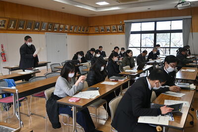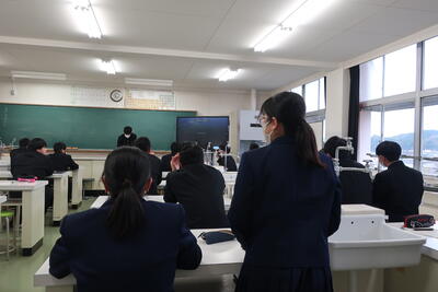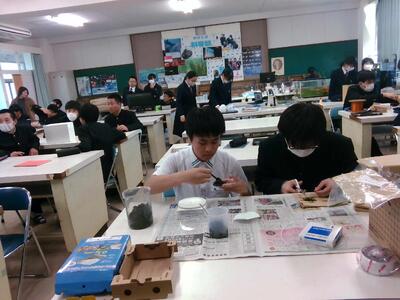 終了後は、各班、研究のデータを整理するなど、ポスター作成のための下準備をしていました。これは、3月に学年で実施する「ミニ探究成果発表会」に向けての活動です。2年生(ATⅠ)は3月19日に天草市民センターで行うARP探究成果発表会では発表を予定していませんが、その代わりに、この「ミニ発表会」で各班の成果を共有することにしています。学年の仲間に自分が研究していることについて知らせるだけでなく、他の班の研究の手法やプレゼン技術を学ぶ貴重な機会になると思います。週1時間と限られた時間ではありますが、時間の使い方を工夫して、計画的に進めていきましょう!