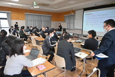 本日の午後、SSH職員研修が行われました。今年度最終回である今回の研修では、研究主任より研究結果と考察の指導のポイントについての講義があった後、グループに分かれて実際の指導について考えました。