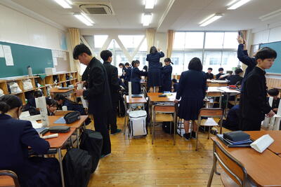 Today in the 7th period, new AS II and AS III students met face-to-face for the first time in class. The AS II, second-year students, listened to the third-year students' research presentations with their eyes shining. They were very active during the Q&A session too. We are sure both AS II and AS III will have a great time doing their research.