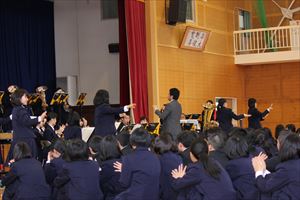 吹奏楽部の歓迎演奏の際には、1年生も笑顔で手拍子をしながら演奏に聞き入り、とても楽しそうでした。その後、生徒会長の歓迎の言葉や生徒会執行部の紹介が行われ、1年生の代表者もこれからの高校生活に向けての決意表明を行いました。