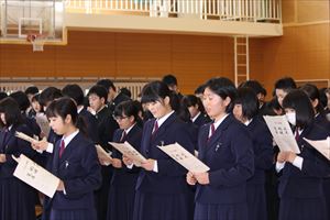 最後に、1年生も含めた全員で、天草高校の校歌を斉唱しました。