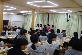 4月18日(火)の19時から、天草地区の合同女子寮である「桜華寮」で、1年生の歓迎会が行われました。この日のために用意された食事や、2年生有志による出し物を楽しみながら、和やかな雰囲気で会が進み、最後は1年生が順番に自己紹介を行いました。