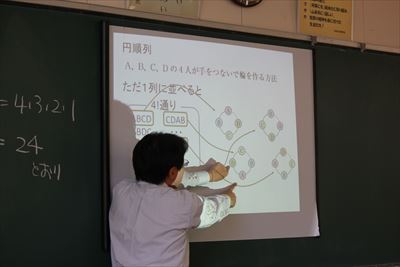 5月17日(水)4限目に1年6組教室で「重複順列と円順列(数学A)」の公開授業がありました。