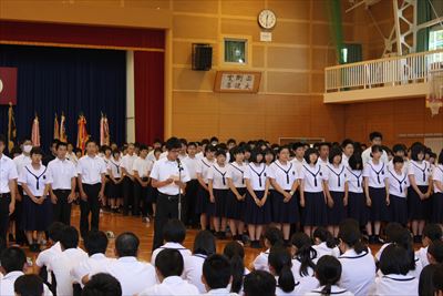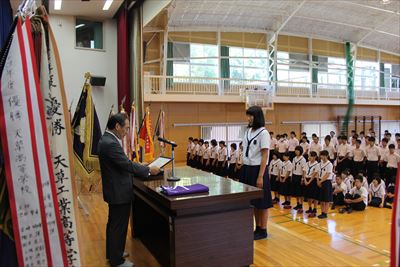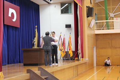 校旗授与代表は陸上部、決意表明は男子ソフトテニス部と囲碁将棋部が行ないました。
