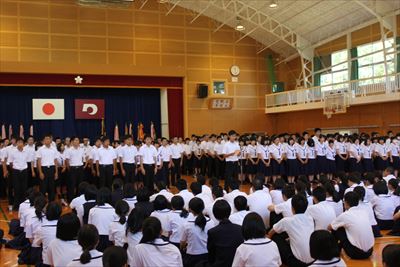 中間考査終了後、天草地区大会表彰式および県高校総合体育大会・総合文化祭推戴式が行われました。
