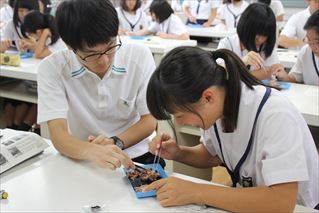 3年・理系生物「ブタの視覚器の観察」「ニワトリの中枢神経の観察」です。