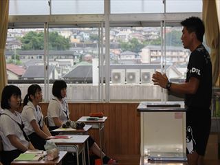 避難訓練終了後は、各クラスで、担任の先生からの講話があり、隈部先生は、熊本地震の経験をもとにお話をされていました。