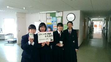 現在、昼休みに12月生徒朝礼で説明があったロヒンギャ難民緊急募金を実施しています。