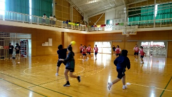 男子種目はハンドボール、女子種目はドッヂボールです。