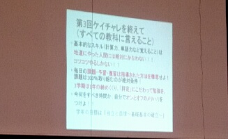 次に、田上先生から「根拠ある間違いは、次の正解に必ずつながる!」、眞岡先生から「努力はコップの中の水と同じ。溢れて初めて見えるもの。それまで頑張ろう!」といった話がありました。