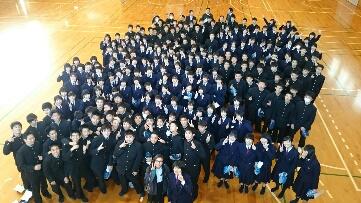 そして、生徒朝礼終了後には1学年より思い出の写真集をプレゼントされ、満面の笑みを見せてくれました。